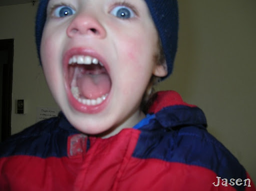 I wanted to get a happy face in the middle, but this is what chance brought us. Which, if any one knows Jasen, is probably more accurate. He'll be sweet and patient for a while, then it's "Hurry and take the @!?& photo!"